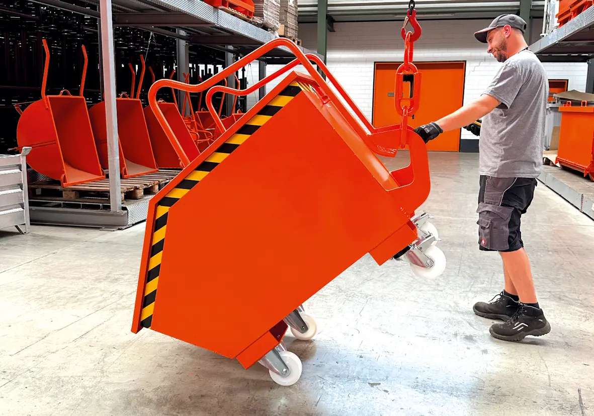 Kippbehälter, Späne-Kippbehälter, Schwerlastkippbehälter für Schrott, Stapelgestelle